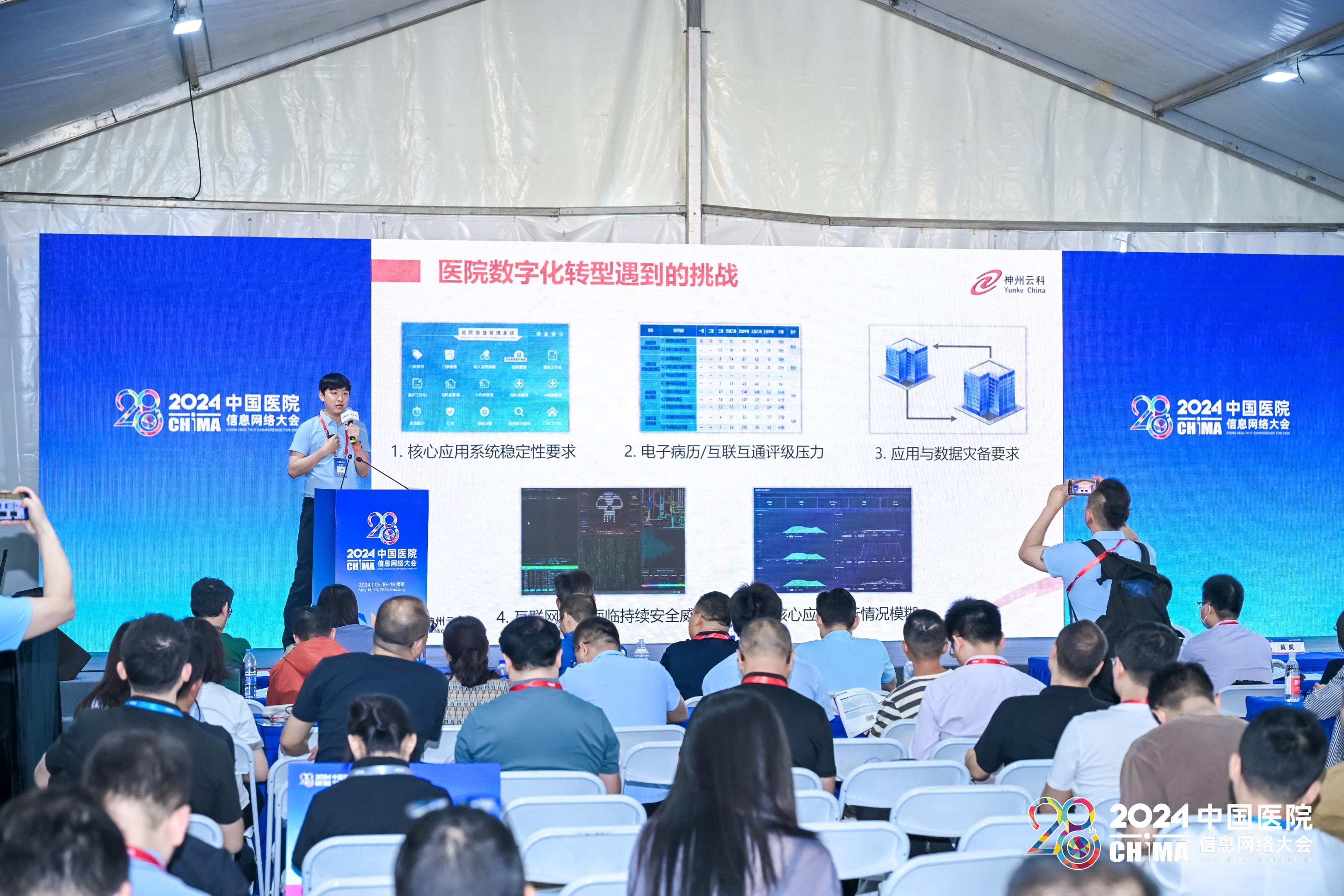 2024年5月17-19日,第28届中国医院网络信息大会(CHIMA2024)在南京圆满落幕。本次大会以新质生产力理论为指导,以深化应用,融合创新,用信息技术赋能医院高质量发展为主题,邀请国家卫生健康委相关司局领导、两院院士、国内外医疗卫生信息化领域知名专家学者、领军人物做主旨报告。在这场医疗信息化的年度盛会上,酷游九州会上携其“保障医院核心系统健康无虞”主题演讲精彩亮相,成为展会的一大亮点。